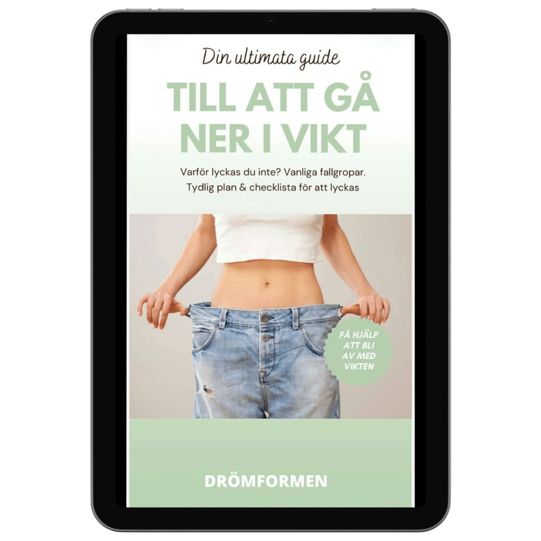 När du köper Drömformens e-bok får du en fullspäckad guide med konkreta tips och råd för att gå ner i vikt på ett hållbart sätt.